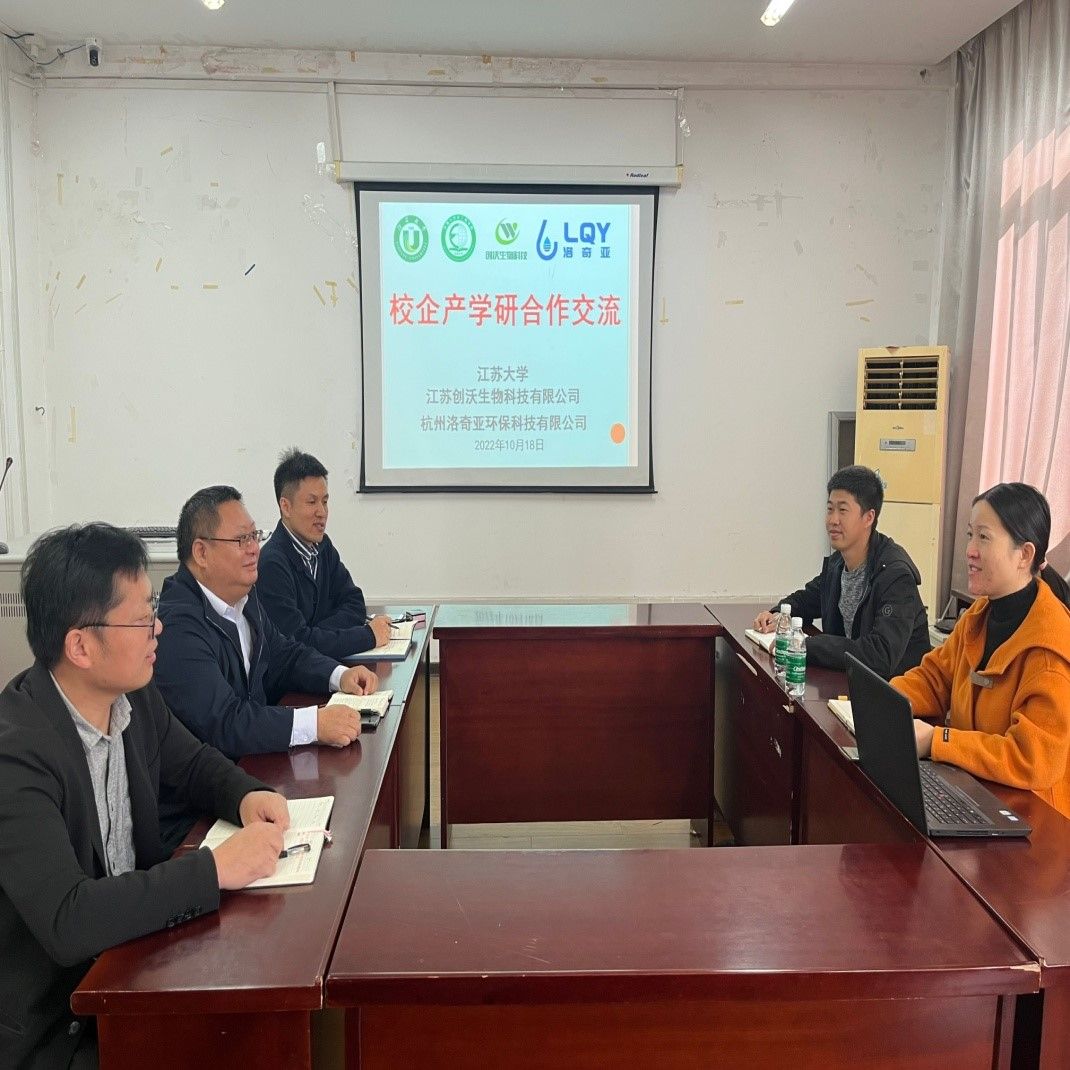 2022年10月18日,毕业于江苏大学环境生态研究所并成功创办江苏创沃生物科技有限公司、杭州洛奇亚环保科技有限公司的两位校友刘鹏程、雷育斌来到我院,就各方面合作事宜与我院相关部门开展了深入交流。交流活动由我院院长杜道林教授主持,环境生态研究所副所长戴志聪、污染控制理论与技术研究所副所长周向同参加了交流。